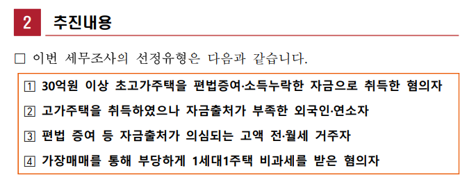 ‘한강벨트’ 등 초고가주택 전수 검증하여 세무조사 착수 국세청 보도자료(2025.10.1)(부동산 대책)