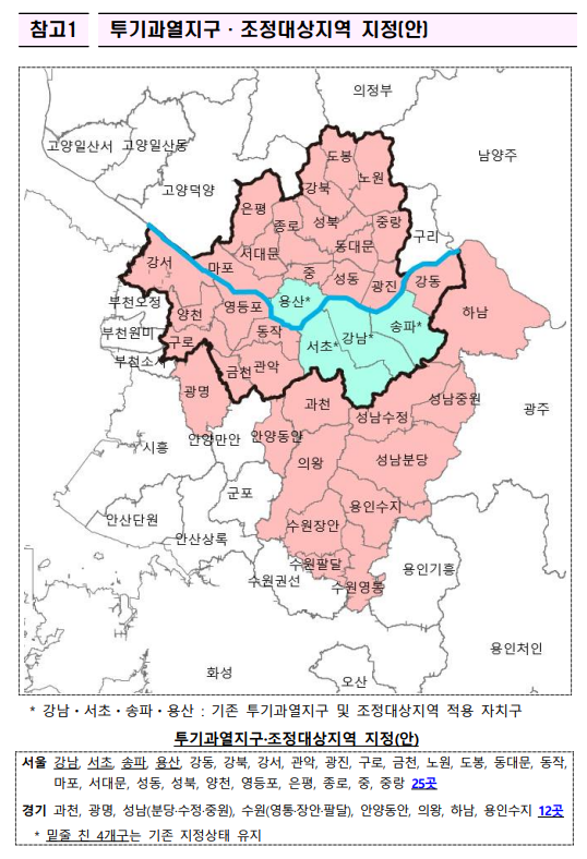 조정대상지역은 2023.1.5. 강남3구와 용산구를 제외하고 해제되었다가 2025.10.16. 서울 전지역과 경기도 12곳이 지정되었습니다.