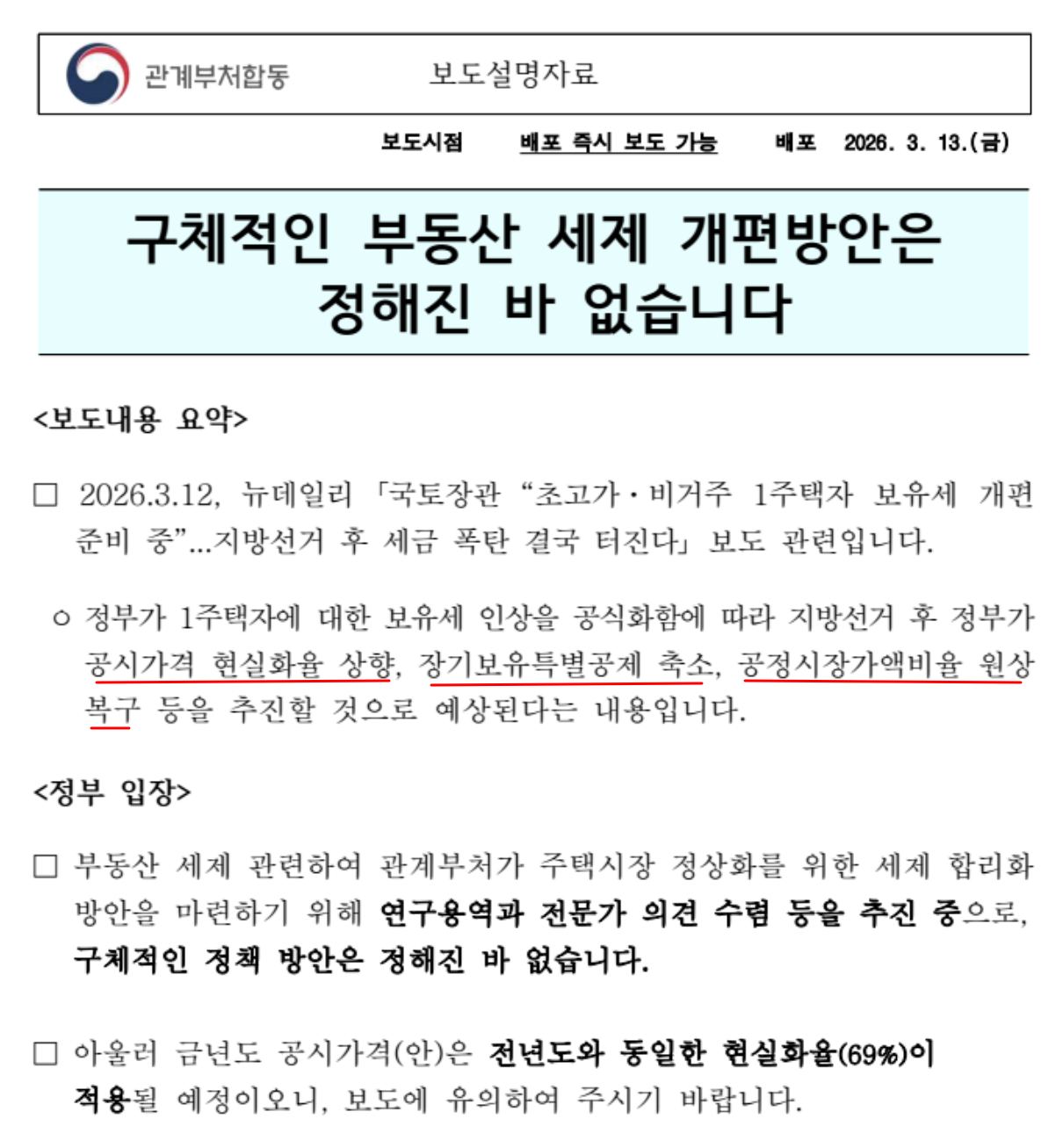 세제 개편방안 관련 언론보도에 대한 관계부처합동 보도설명자료가 있어 소개해 드립니다.