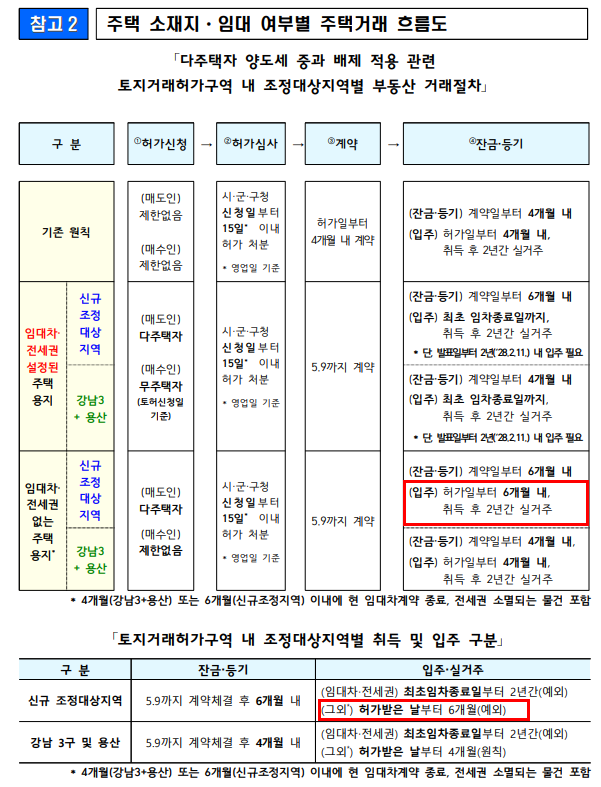 2026.2.12. 정부에서 발표한 다주택자 중과 유예 종료 및 보완 방안 보도자료 중에서 아래 ➋ '25.10.16. 신규 지정된 조정대상지역의 토지거래허가 대상 주택을 매수하는 매수자의 경우 토지거래허가일로부터 6개월 내 해당 주택에 입주하면 된다고 하였는데 그에 대에 대한 법령 등 근거가 확인되지 않는 것 같습니다.