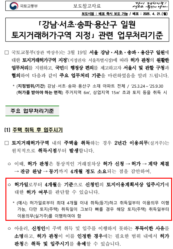 위의 내용 중 ➊ 기존 조정대상지역인 경우 근거 자료는 2025.4.21. 국토교통부의 보도참고자료가 있습니다.